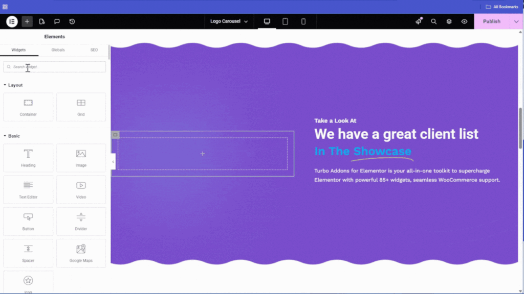 Once configured, the Logo Carousel will display responsive, animated brand logos that adapt perfectly to desktop, tablet, and mobile devices.