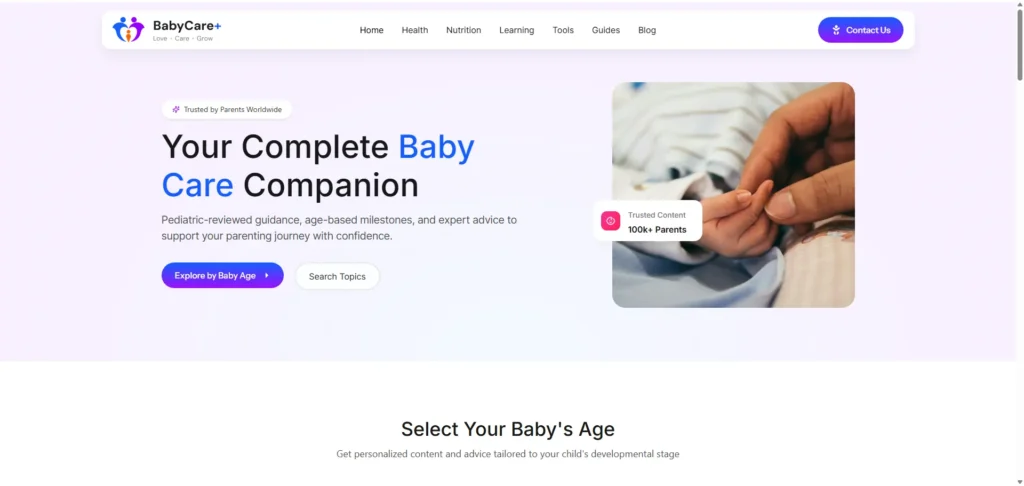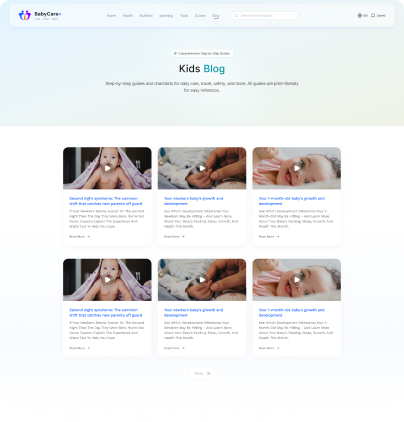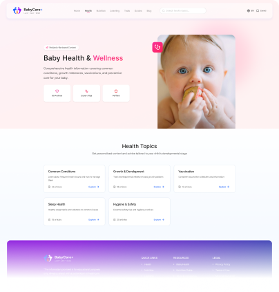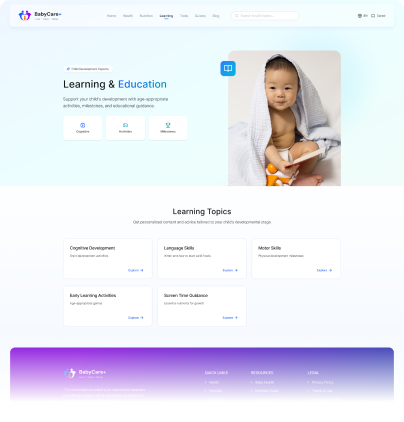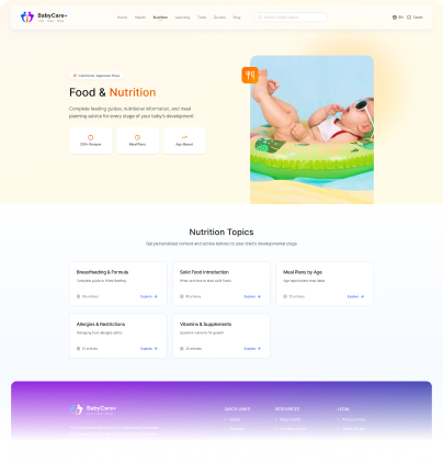 Baby Care is a clean, modern and fully customizable Elementor website template designed for parenting, baby health, nutrition, learning, and child care service websites.