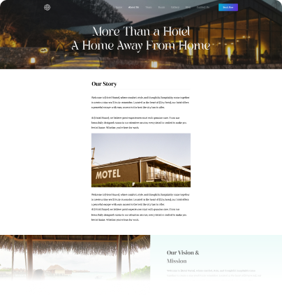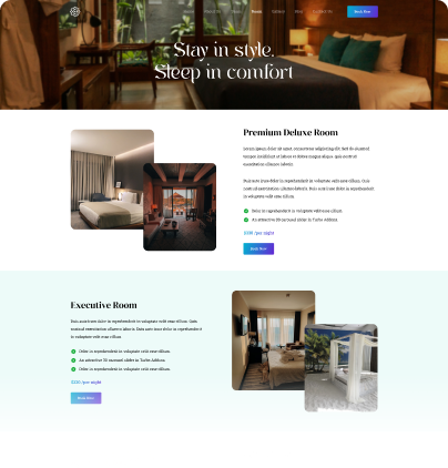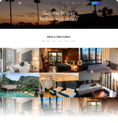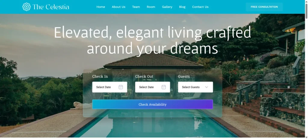 It helps showcase rooms, services, team, gallery, and blog in a stylish, elegant layout to attract more guests and bookings.