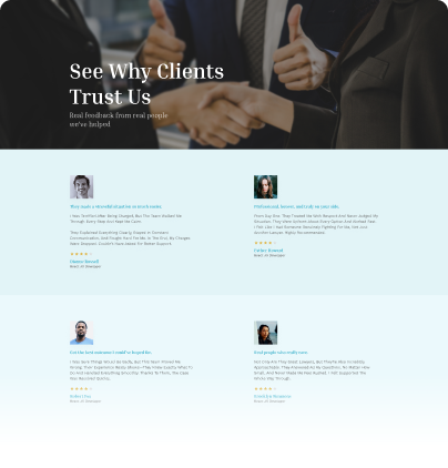 Lawyer Reviews – Testimonials and client feedback for credibility.